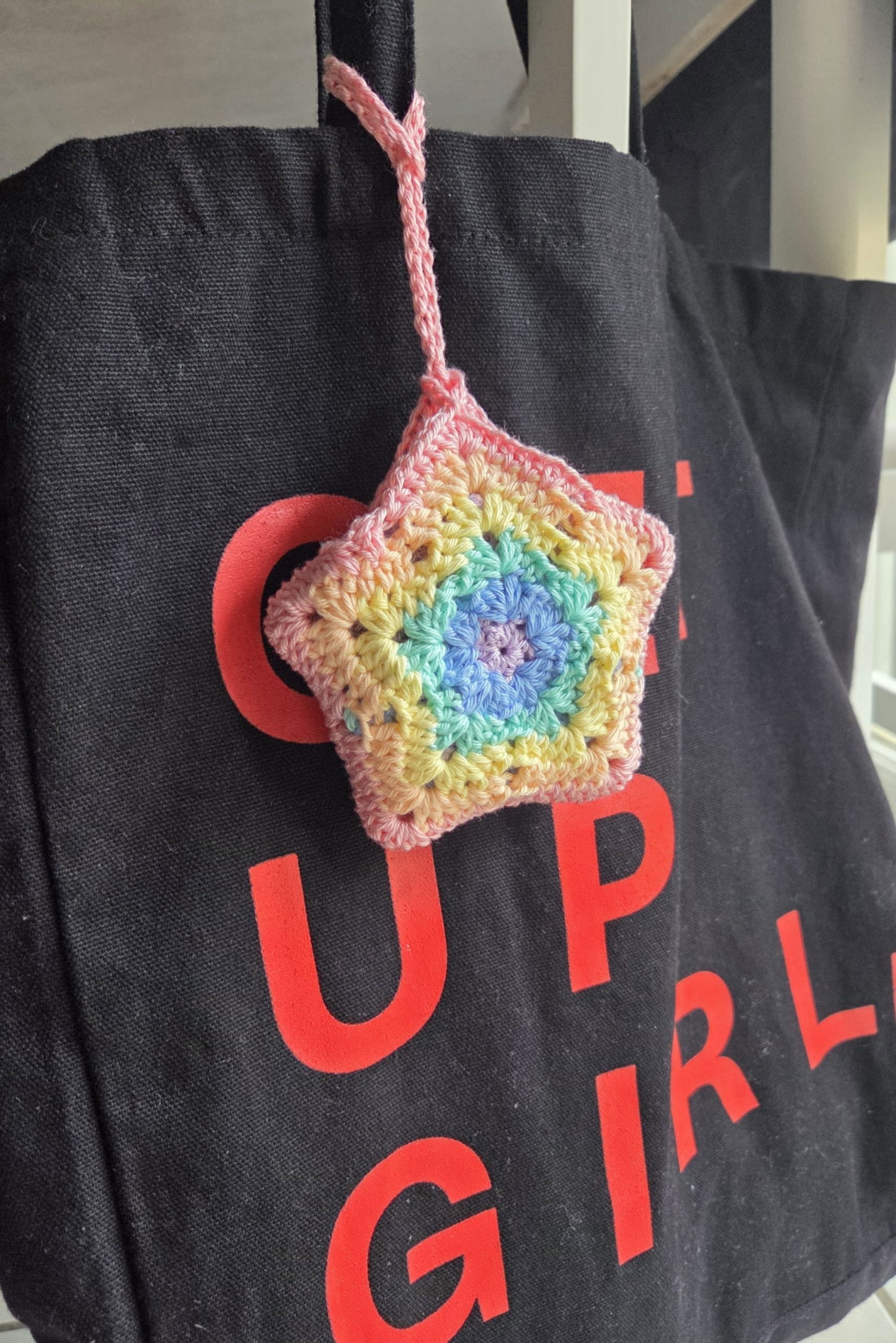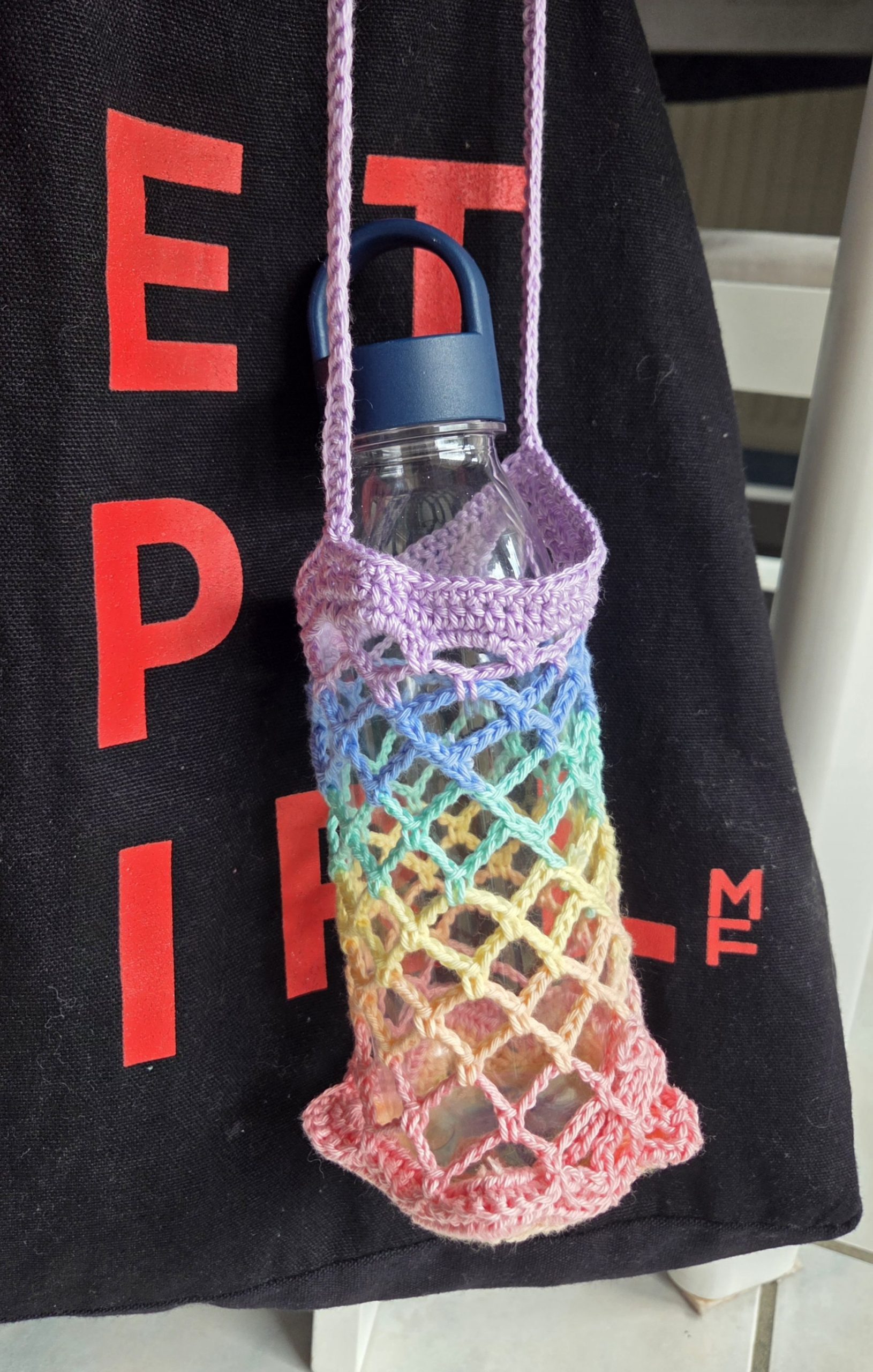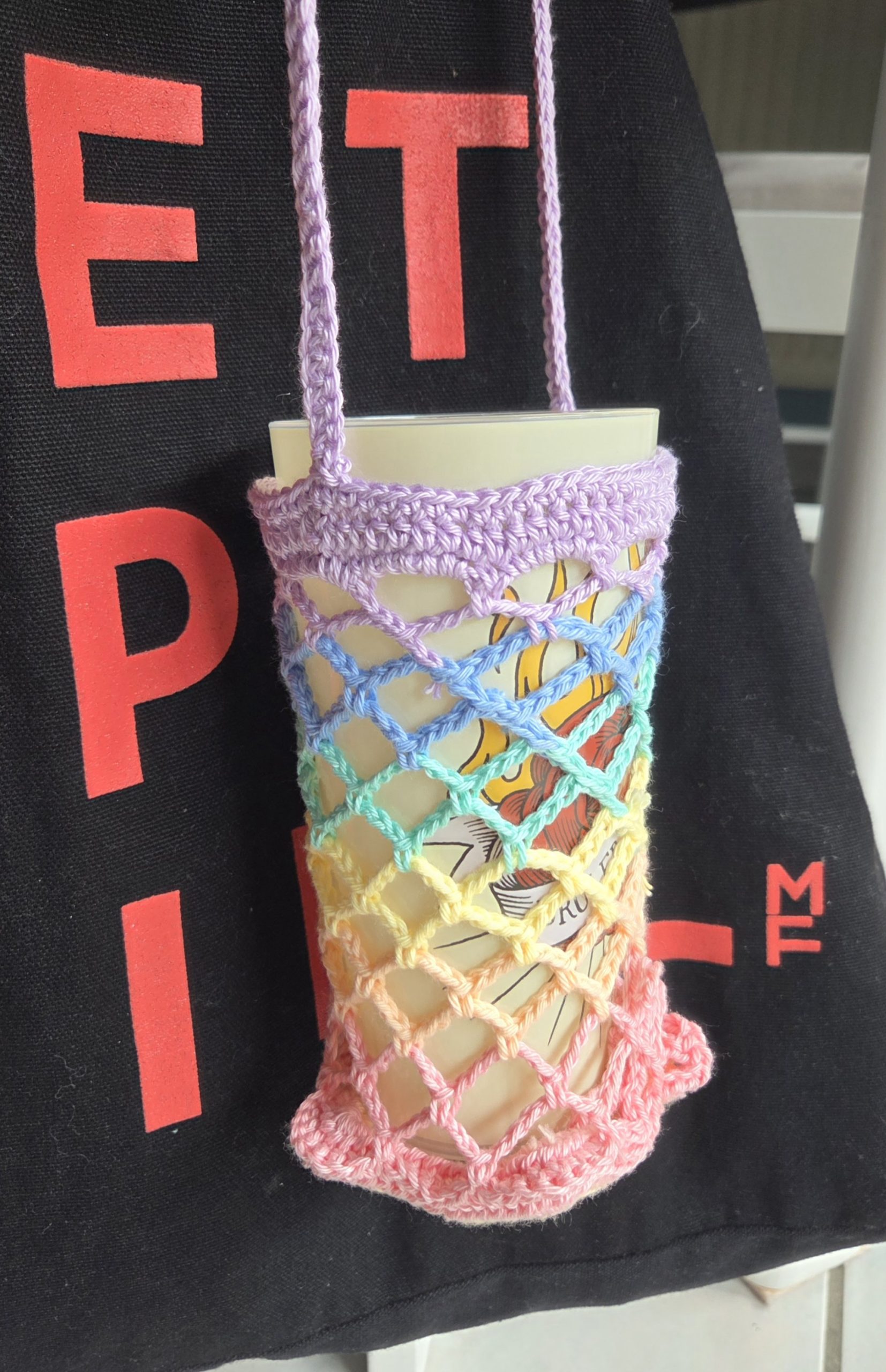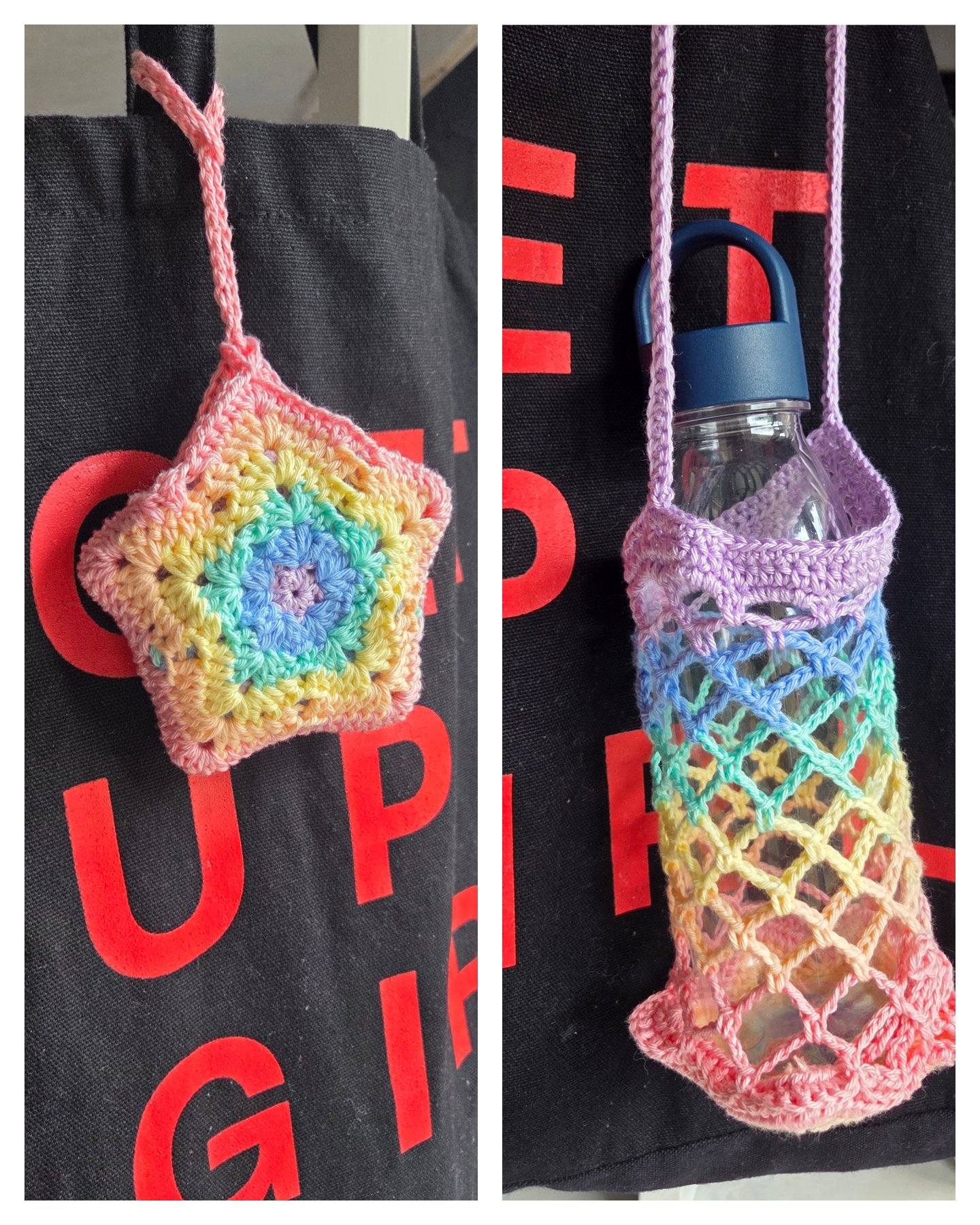 Porte gourde / Thermos / Ecocup pliable motif étoile Arc-en-ciel en COTON.
